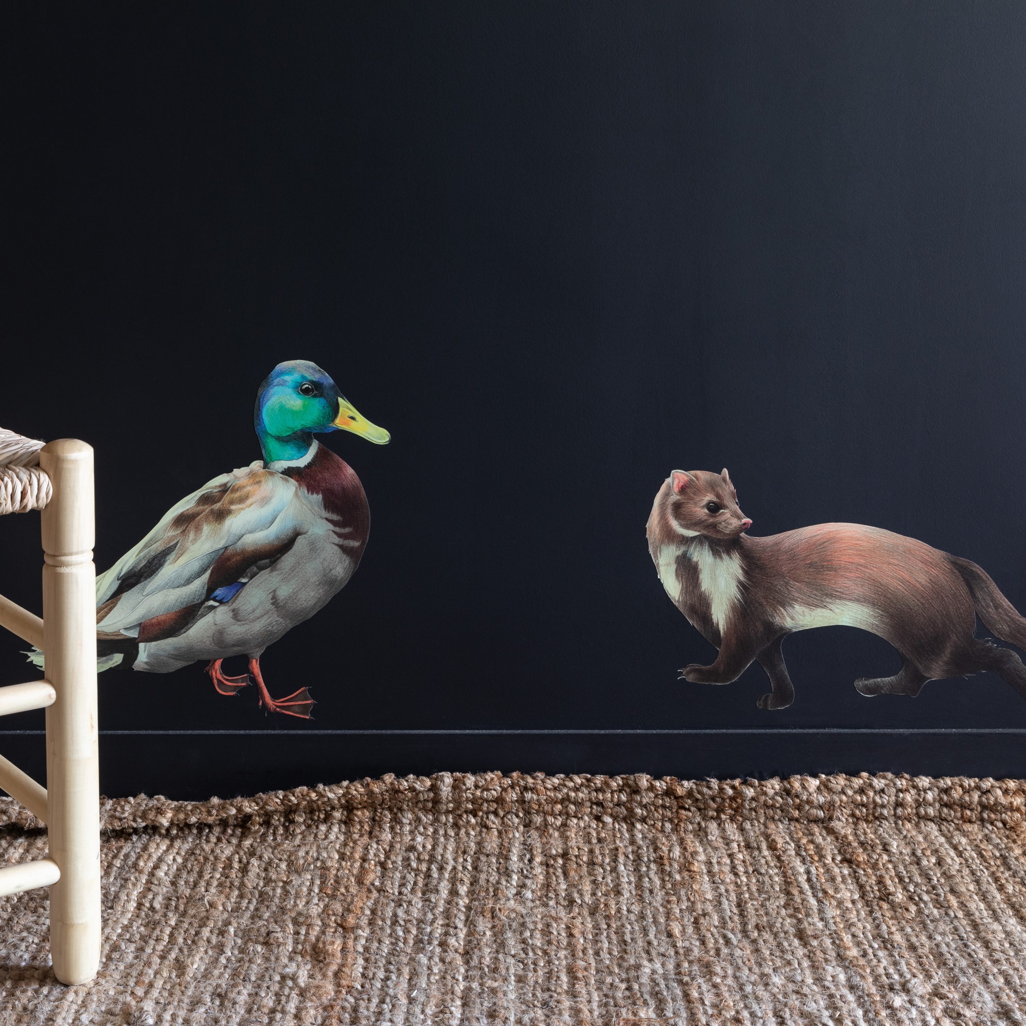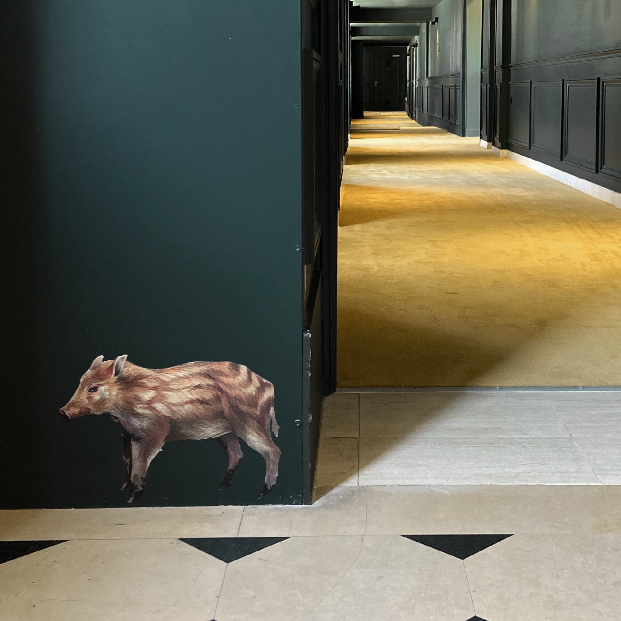 Illustrations d’animaux de la forêt réalisées pour la Maison du Val, hôtel à Saint-Germain-en-Laye et ancien pavillon de chasse de Louis XIV, en collaboration avec Adrienne Bornstein et le studio d’architecture « En Bande Organisée ».